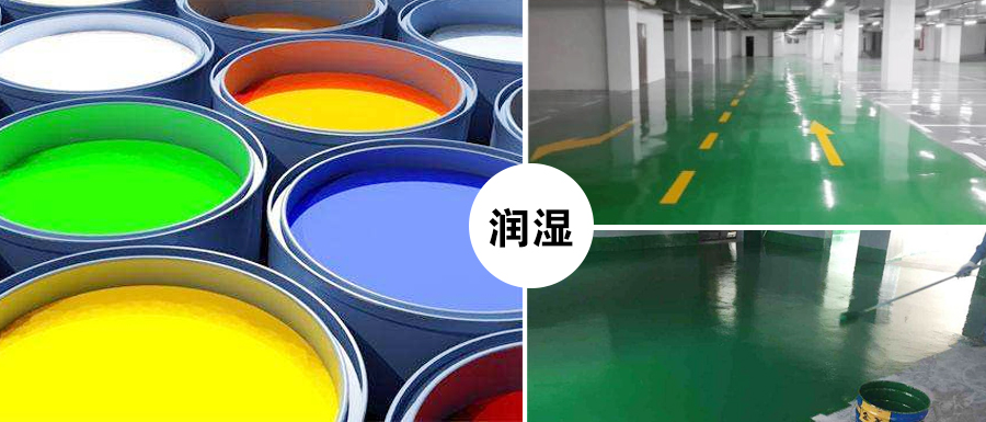 颜料表面的水分、空气被溶剂(漆料)所置换称为润湿。溶剂型漆的润湿问题不大,因为溶剂(漆料)表面张力一般总是低于颜料的表面张力的。但是润湿要有一个过程,特别是因为颜料是一个聚集体,溶剂需要流入颜料的空隙。当溶剂粘度低时,润湿的速度可以很快。要注意加颜料和溶剂的顺序,要先加溶剂后加颜料。在水性漆中,由于水的表面张力较高,对于无机颜料的润湿便有困难,需要加润湿剂以降低水的表面张力。